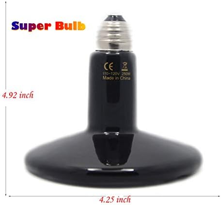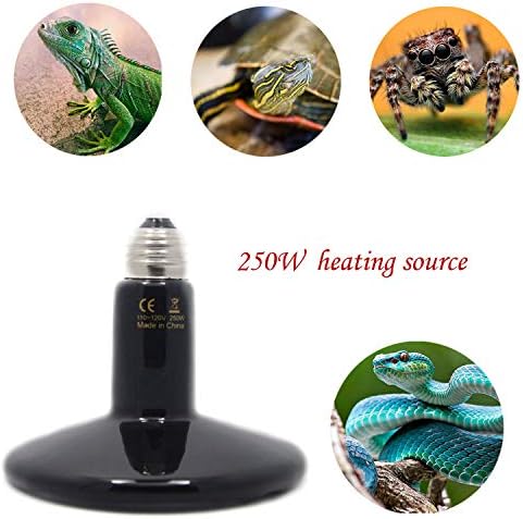Heating Source: Ceramic, Infrared, Electrical, No Light Emitted, will not disturb their normal sleep schedule (day or night). Infrared heat penetrates the scales and skin tissue, promoting health and healing as it widens the blood vessels and increases blood circulation.