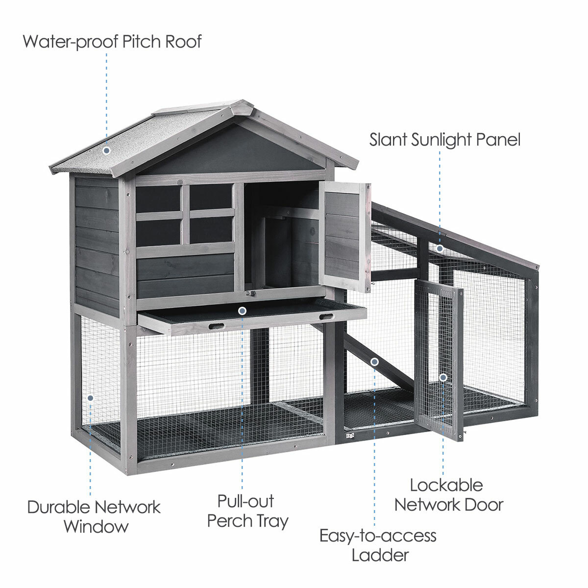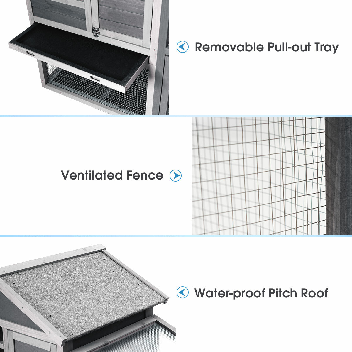 58″ Wooden Rabbit Hutch Large Chicken Coop Weatherproof Indoor & Outdoor Use