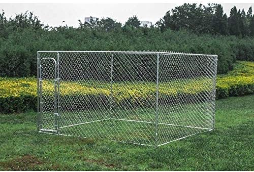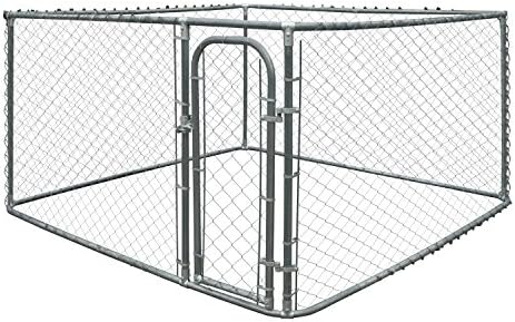 You can’t be around your pet 24 hours a day; when you have to leave them on their own, let ALEKO’s kennel playpen keep them safe and sound. Our kennel will keep your pet safe and secure, while still open enough so that your beloved animal won’t feel too confined. Made out of rust resistant powder coated galvanized steel, this heavy duty kennel is made to last. One kennel is a large enough playpen for a most animals, and will give your furry pal plenty of room to run and play safely. For additional protection from the elements, you can buy a roof frame and tarp cover, sold separately. Keep your pet warm or cool, giving yourself peace of mind knowing they are secure in their kennel without the need for a leash. Product specifications: 2.5 x 2.5 inches mesh opening; 20 gauge 1.25 x 1.25 inch tube size; 13 gauge wire. Product Dimensions: 13 x 7.5 x 6 feet; Frame color: Silver.