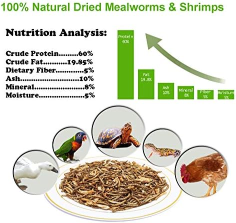 Amzey Shrimp & Mealworms 100% Non-GMO Dried Mealworms – High-Protein Meal Worm Treats -Perfect for Your Chickens,Ducks,Wild Birds,Turtles,Hamsters,Fish,and Hedgehogs