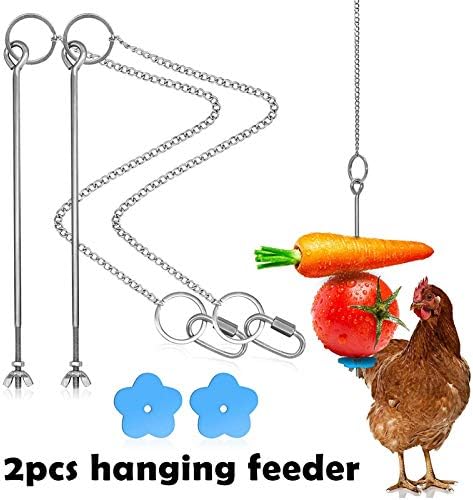 1.High-quality material: stainless steel feeder, safe and durable. The chain is about 14.56 inches long and the rod is about 7.87 inches long. Enough to skewer cabbage, lettuce, and fruit to feed chickens or other large and medium-sized birds