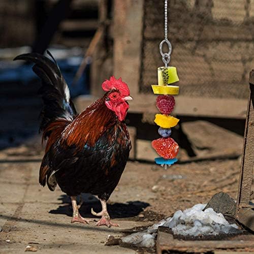 How to use: Loosen the bottom screw, string tomatoes, apples, cabbage corn or other fruits and vegetables, just like chickens likes, then tighten the screws and hang the vegetable fork in the proper position.