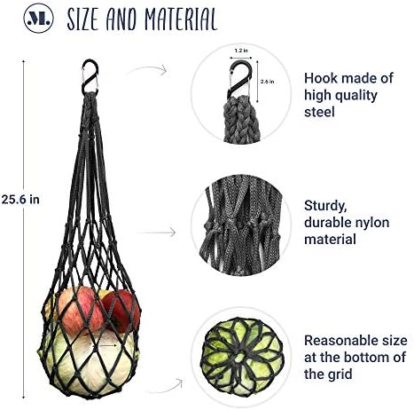 🦜【Premium Material&Size】:The Vegetable net pockets are made of durable Nylon, 24″ in length.Big enough、durable enough to accommodate various fruits and vegetables, such as watermelon, cabbage, cabbage, etc. It has a good load-bearing capacity.