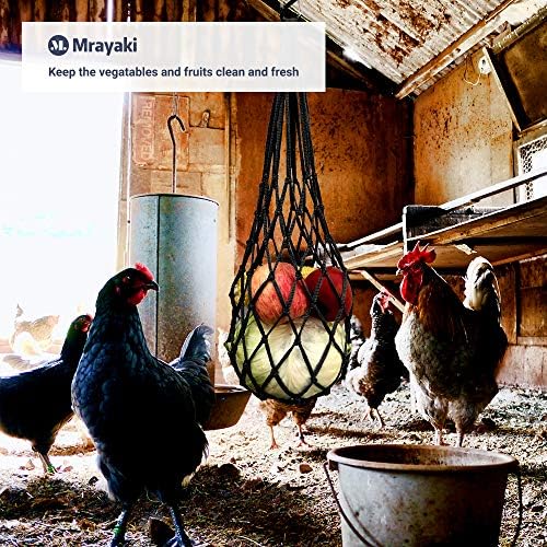 🦆【Easy to Use】:Put carrots, cabbage, lettuce, corn or other fruits and vegetables in the fruit and vegetable net bag, hang the feeder in the chicken coop with a hook, you will see your chicken or pet bird peck and let They enjoy a period of entertainment.
