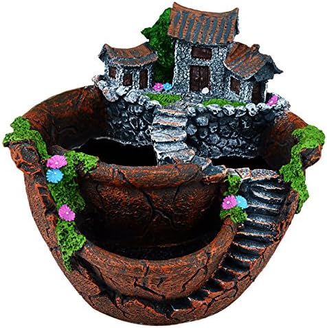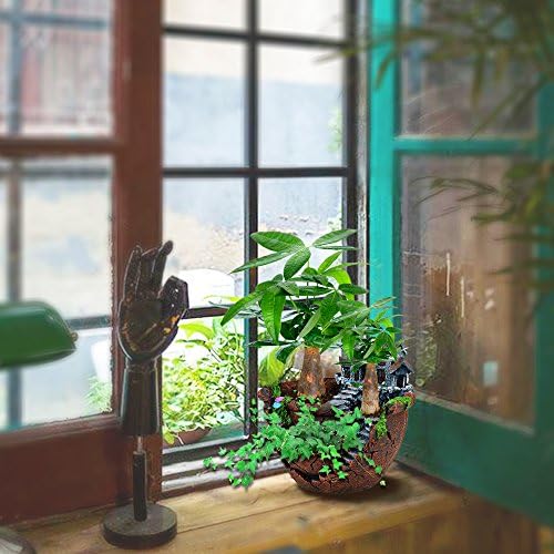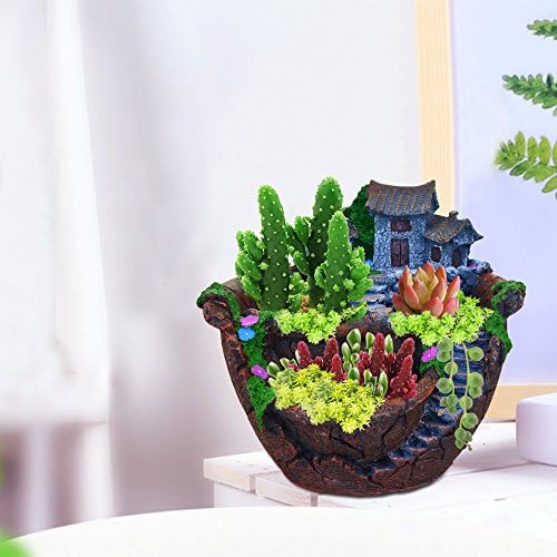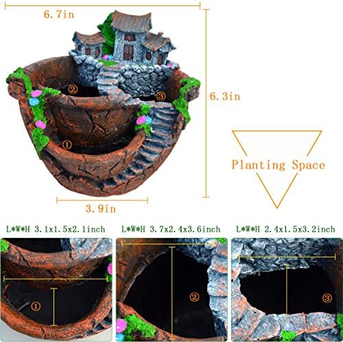UNIQUE DESIGN: This handmade pot is very adorable and unique, opting for a friendly rustic look, add vitality to the place that you want. there are mosses, small flowers,stones around the fake house. three ports can be cultivated various small plants.