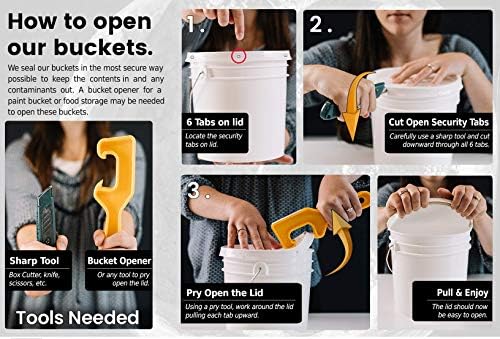 *We seal our buckets in the most secure way possible to keep the contents in and any contaminants out. A bucket opener for a food storage or paint bucket may be needed to open these buckets. Bucket openers can be purchased from online retailers such as Amazon or from your local hardware or home improvement store.