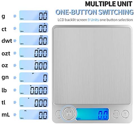 MULTI-FUNCTION – You can use the “M” button to easily switch between units with one button, use the “T” button to remove the container weight, and the “PCS” button to count the number of parts. Automatic shutdown and manual shutdown can be set by yourself, easy to operate