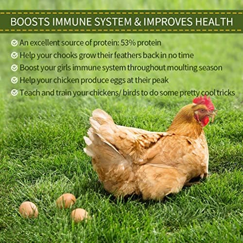 During moulting season, which generally occurs throughout autumn and spring, it’s essential that every chicken owner boosts their flock’s protein intake in one way or another. Mealworms are an especially good choice, as they are a dense source of protein, which will help your chooks grow their feathers back in no time. It’s also important to note that your flock’s immune system will be reduced throughout moulting season, so it’s imperative that you fortify their diet with some tasty mealworms, to help them through this difficult season