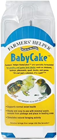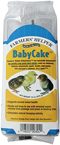 Farmers’ Helper Specially Formulated BabyCake. Used together with your favorite daily ration including Resolve’s UltraKibble for Chicks, our BabyCake Supplement brings the free range into the brooder! Farmers’ Helper BabyCake Supplement is made with ingredients that are specifically designed to help optimize nutrition and minimize maintenance. Hang our BabyCake Supplement or leave it within the provided enclosure. We suggest that you feed BabyCake Treats thru chicks first 8 weeks of life. Begin leaving the BabyCake out for a few hours every day, gradually increasing the number of hours over the course of two weeks. By the fourth week, the BabyCake can be left out all day. Farmers’ Helper BabyCake treats are designed to support normal avian health with minimal waste. Chicks will forage on the BabyCake for hours. For intermittent feeding only, not a complete feed. Make certain that you keep the BabyCake treat away from an heat source. This product may contain one or all of the following allergens: Tree Nuts, Soy, and Fish.