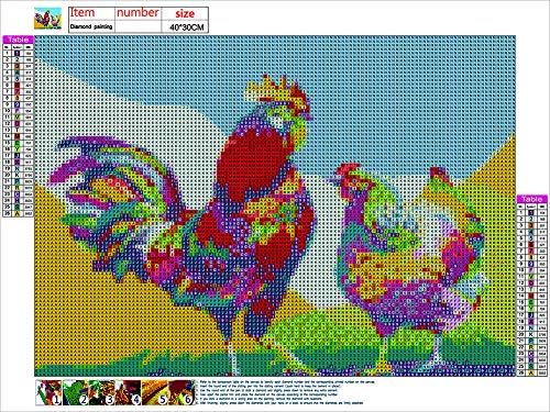 Farmhouse Rooster Hen Chicken Diamond Painting Kits for Adults, Flocks Animal Paint with Diamond Art by Number Kits 5D Full Drill Rhinestone Dot Embroidery Cross Stitch Home Wall Décor 12X16 inch