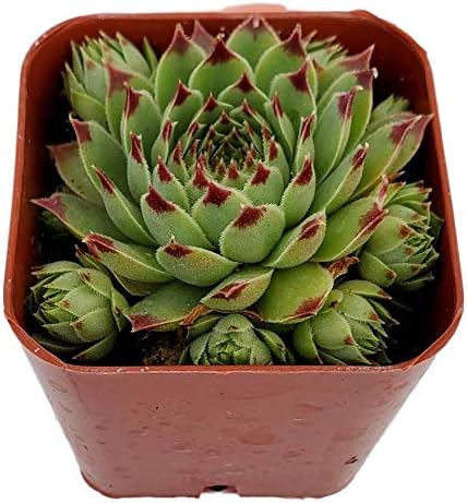 Fat Plants San Diego Hen’s and Chicks Succulent Plant, Fully Rooted Sempervivum Calcareum in a 2 inch Growers Plastic Planter with Soil
