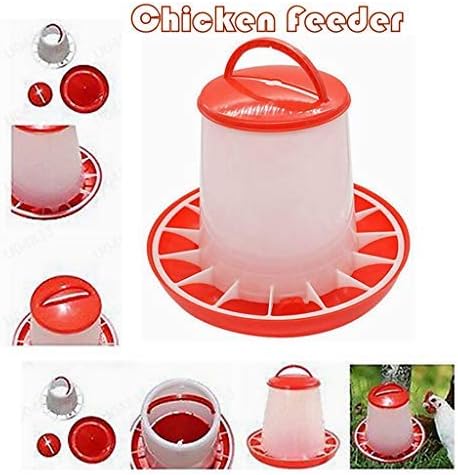 fine_fine Chicken Feeder and Waterer Kit with Lid Handle – 1.5kg Capacity Poultry Feeder Hanging Outdoor – Baby Chick Feeder Plastic Food Feeder Chicken Chick Hen Poultry (red)
