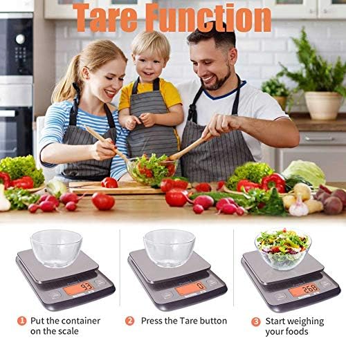 SMART FUNCTIONS: Press tare button, automatically zero out the weight so you can keep adding items on. Smart indication for Overload, Low batteries and Unstable position. Auto off the backlit of screen when not in use, then light up when using. 180s auto off of the digital scale.