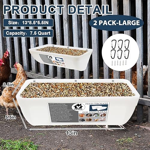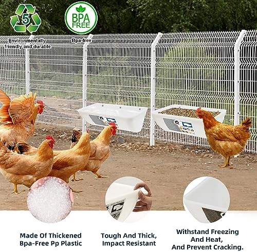 SUITABLE FOR ALL KINDS OF POULTRY – GIFANK 2-Pack Chicken Feeder Feed Trough Suitable for all kinds of poultry such as chicken/duck/geese/pigeon. It’s a functional and practical addition to any backyard chicken coop or farm. With this feeder, your poultry will be happier and healthier, and you will be too!