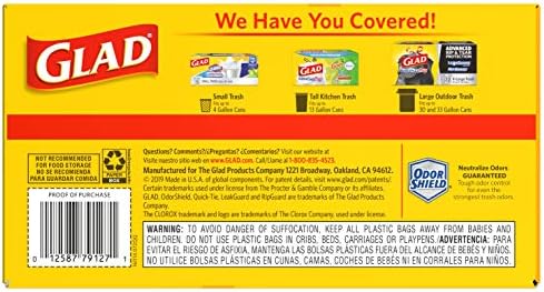 CLEANING MADE EASY: Glad 13 Gallon trash bags support an active kitchen and provide a versatile plastic bag to tackle any household or office chore ; Size Matters : Wide enough to fit containers up to 2 feet (1 ft 11 ¾ inches). Dimensions: 1ft 11-3/4 in x 2ft 1-3/8 in │ 60.3cm x 64.5cm