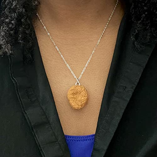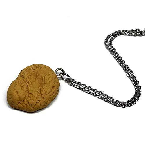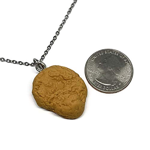 Handmade Chicken Nugget Charm Necklace, 20″ Stainless Steel Hypoallergenic Cable Chain With Lobster Clasp, Gifts For Fast Food Lovers, Jewelry That Looks Like Food