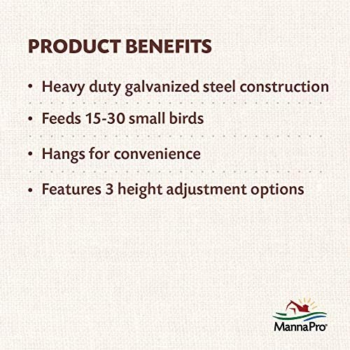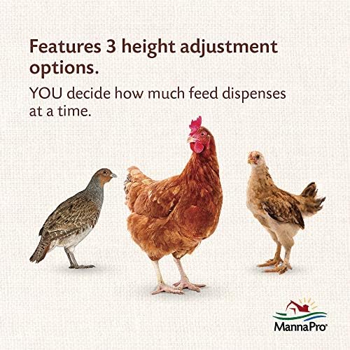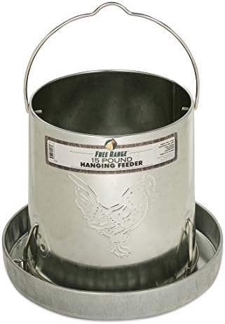 The Free Range heavy-duty galvanized feeders feature rolled edges for safety and a convenient hanger/carry-handle. Design makes for easy 3-position height adjustment and is suitable for game birds, chickens and young chicks. 15 lb. capacity feeds 15-30 birds.