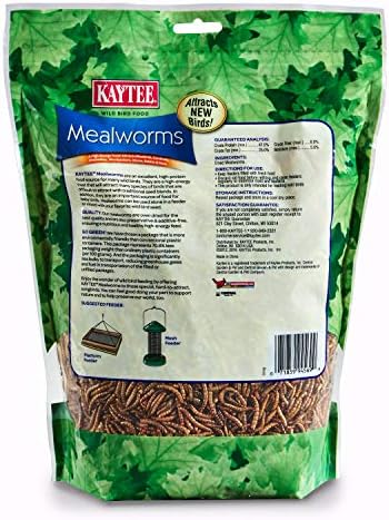 Kaytee Meal Worm Wild Bird Food is a delicious 100% mealworm treat that provides an excellent source of protein for wild birds. This high-energy food source is a favorite among bluebirds, wrens, robins, chickadees, woodpeckers, cardinals and many songbirds that are hard to attract with the average seed blend. Dried mealworms have the nutritional value of live mealworms and are more convenient to feed. You can use them alone in a feeder or mix them with your favorite wild bird seed.