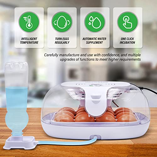 WIDELY USED: This poultry incubator is suitable for incubating all poultry – chickens, ducks, gooses, quails, birds, pigeon, etc.Transparent cover for visibility of eggs hatching, perfect for incubation lessons and demonstrations.