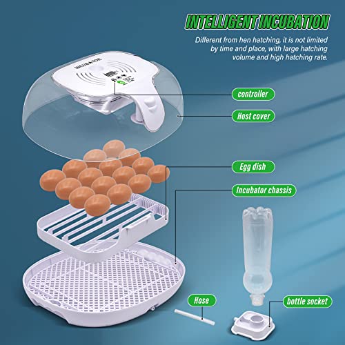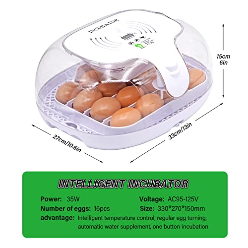 KHEARPSL 16 Egg Incubator Egg Hatching Incubator with Egg Candler, Temperature Control, Automatic Egg Turning and Water Adding, Auto Incubator for Hatching Chicken Duck Quail Birds