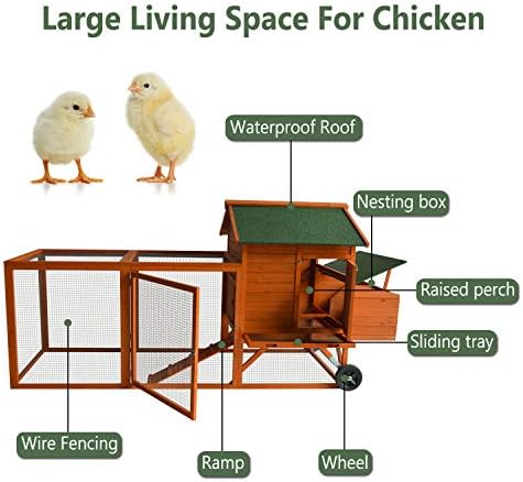 -Spacious Space for Activities and Rest:The large size of the cage is divided into two spaces for the main house and the running cage which provides more spacious room for activities and life. And the chicken house is equipped with nesting boxes, rest boxes and ramps where your poultry can exercise, rest and lay eggs.