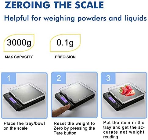 #Precise Measurement# – KitchenTour EG5001 features a weight capacity from 0.3g – 3000g to help you measure jewelry, medicine, and cooking ingredients with refined accuracy.