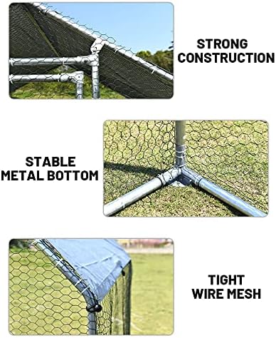 【STURDY AND DURABLE FRAME】Made of sturdy metal frame, the heavy duty chicken coop ensures the stability for long term outdoor use. Featuring protective and resists rust galvanized tubes, the large chicken coop is weather proof and of great durability