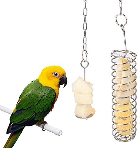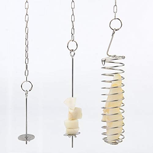 Easy to install: hanging hook at the top of each parrot hanging fruit feeder makes it possible to hang inside the cage; Besides, it can be quick to take out to refill vegetable or fruits.Easy to use: the fruit skewer hanging feeder is very convenient to use, just unscrew the bottom screws, pierce vegetables and fruits into the stick, then tighten the screws and hang the feeder in the proper place