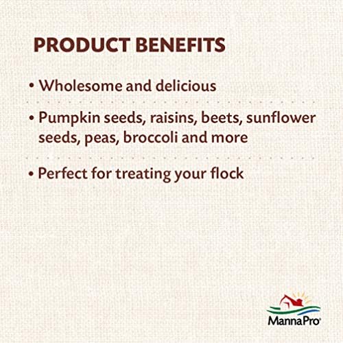 Garden Delight Poultry Treat is a great way to reward your flock! With premium ingredients like pumpkin seeds, sunflower seeds, plus real fruits and vegetables, you can provide a treat year-round that contains all the goodness of a bountiful garden. Garden Delight also includes specially-formulated nutrition pellets for additional protein, vitamins and minerals. At Manna Pro, we understand that animals are our companions as well as our providers. So whether you raise blue-ribbon show birds or you simply enjoy the eggs and entertainment from your backyard flock, treat your feathered friends with wholesome and delicious Garden Delight!