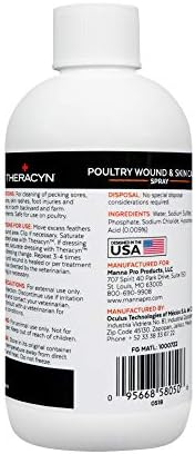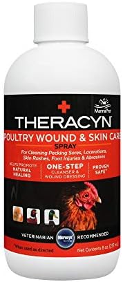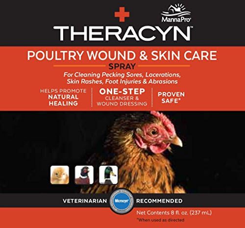 The Theracyn Poultry Wound & Skin Care Spray by Manna Pro is a convenient, one-step cleanser and wound dressing for your chickens that helps promote healing of pecking sores, lacerations, skin rashes, foot injuries and abrasions. It contains the exclusive Microcyn Technology that has treated over 10 million patients, both two-legged and four-legged.