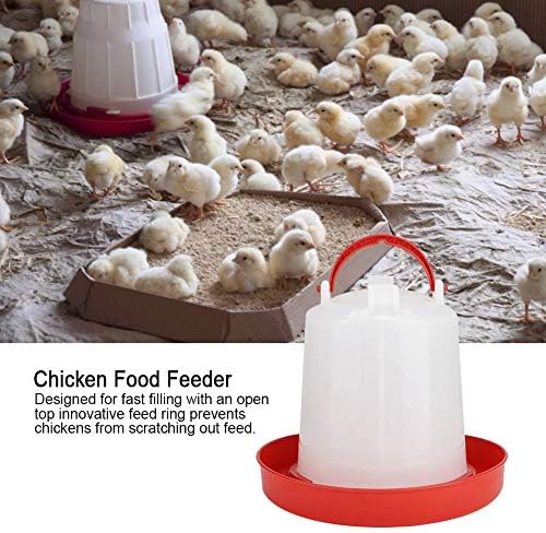 Designed for fast filling with an open top innovative feed ring prevents chickens from scratching out feed.
