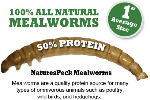 NaturesPeck is your best source for the highest quality mealworms shipped to you in great shape so you will receive whole dried mealworms and not just broken pieces. NaturesPeck mealworms make a great treat for most poultry including chickens, ducks, and turkeys but the high protein found in our dried mealworms makes it a great protein supplement too. When your hens are going through a molt, mealworms will provide an excellent protein boost that can benefit feather growth. Mealworms make it easy to work with your hens because with a bag of mealworms in your hand they will follow you anywhere! Wild Birds like bluebirds, woodpeckers, chickadees, orioles, wrens, and robins will more likely visit your bird feeders if you’re providing mealworms along with your regular bird seed. Insects aren’t abundantly available to birds year round so providing high energy, high protein mealworms will keep your backyard birds happy all year long. Ingredients: Dried Mealworms Guaranteed Anaylsis: Protein (min) 50%, Fat (min) 23%, Fiber (max) 8%, Moisture (max) 7%