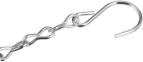 Hanging chain is 35 inch in total length, 32 inch for chain, 1.8 inch for s hook and 1.2 inch for clip, holding capability is up to 20 lbs and suiting your most feeders and baskets.
