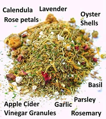 ✔️ 100% HAPPY CHICKEN GUARANTEE: Your chickens will love them or your MONEY BACK! No questions asked! Pet chickens love the scent of calendula, rose petals, alfalfa, oregano, basil, rosemary, chamomile, and lavender. Easy to pour into chicken supplies, nesting boxes, and feeders so your hens have 24-hour access.