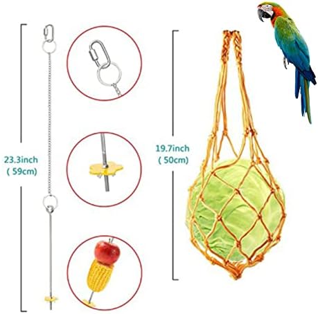 Two Chicken Feeder- Comes with a feeder fork and a hanging net feeder that can hold various fruits and vegetables; Hanging design keeps food and prevents chickens from stepping on.