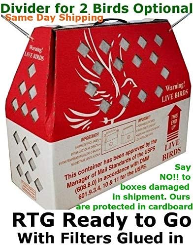 Also stronger bottom design than the Original & 2″ longer & .55 lbs. lighter(Weight 1.2 lbs.) Boxes are RTG Ready to Go I used to buy the DIY boxes & glue the filters in, to save a little money. I would make a mess & in my opinion it is not worth the savings. We only stock & sell the RTG boxes. We package these boxes in cardboard and or bubble wrap to protect them during shipment. Our boxes are better designed and approximately 30% more ventilation than our main competitor’s boxes. Also if you cable tie, or tape 3 or 4 of these boxes together to save on shipping cost, our middle boxes will have over 50% more ventilation than our competitors middle box. Our boxes are tall with a lot of ventilation in the top. The heat rises and escapes. Another Advantage of our Horizon ‘Light’ boxes, they are 2 inches longer & 2 inches narrower than our competitors. Adult birds with long tail feathers need the extra length. You can cable tie or tape 4 boxes side by side and still be under USPS’s 108 inch rule. It calculates out to 104 inches(20″ + 20″ + 16″ + 16″ + (8″ x 4)). Our competitors boxes, because of the bulkier handle system, if you tie 4 of them together the measurement would come out to 114 inches which is over the 108 inch rule. So in comparison, the Horizon boxes are better designed, less expensive, more ventilation, and you save money shipping your birds. Returned items subject to 20% restocking fee.