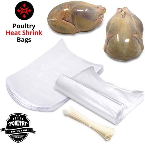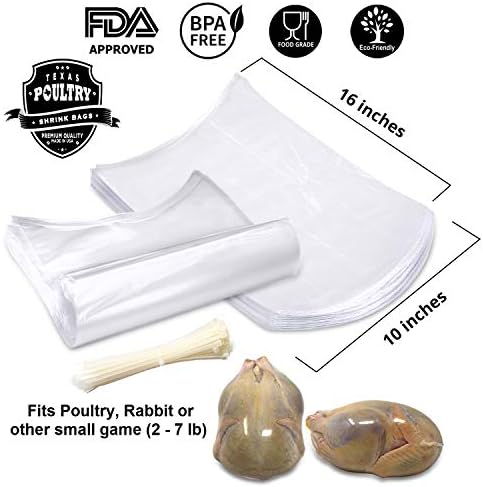 Poultry Shrink Bags-Clear 10″ x 16″ Chickens or Rabbits-w/ zip ties included/2.5 Mil/Freezer Safe