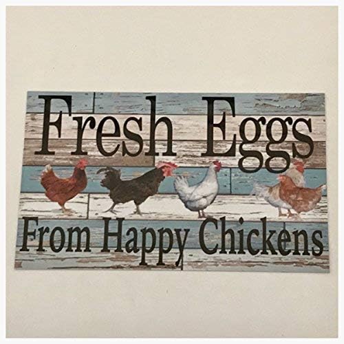 Sign Fresh Eggs from Happy Chickens Blue Timber Look Wall Plaque or Hanging Hen House Coop Rooster Farm Rustic Wall Room Entrance Door Ch