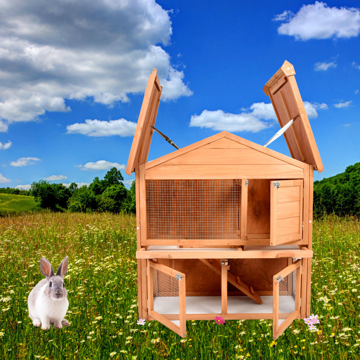 Wooden Chicken Coop Hutch Cage PET House Enclosure Outdoor Indoors W/ Run 80′