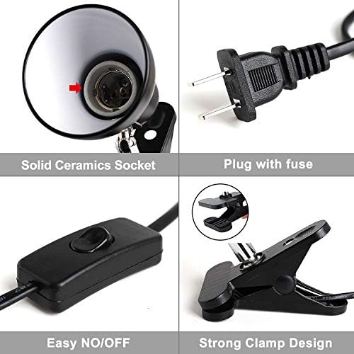 Wuhostam Reptile Habitat Lamp Fixture Heating Bulb Holder Stand – Flexible Clamp for Reptile,Terrarium,Chickens Pet Brooder