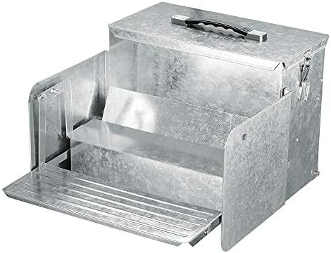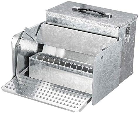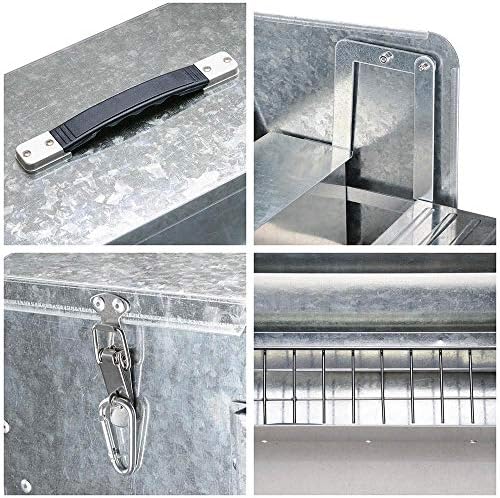 Solid galvanized steel construction, durable, rust-proof and long lasting; 12L large capacity chicken feeder, saving time on feeding